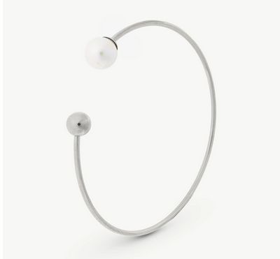 Kruta narukvica 58x58mm od čelika, okrugli bijeli biser promjera 8mm i kuglica od nehrđajućeg čelika