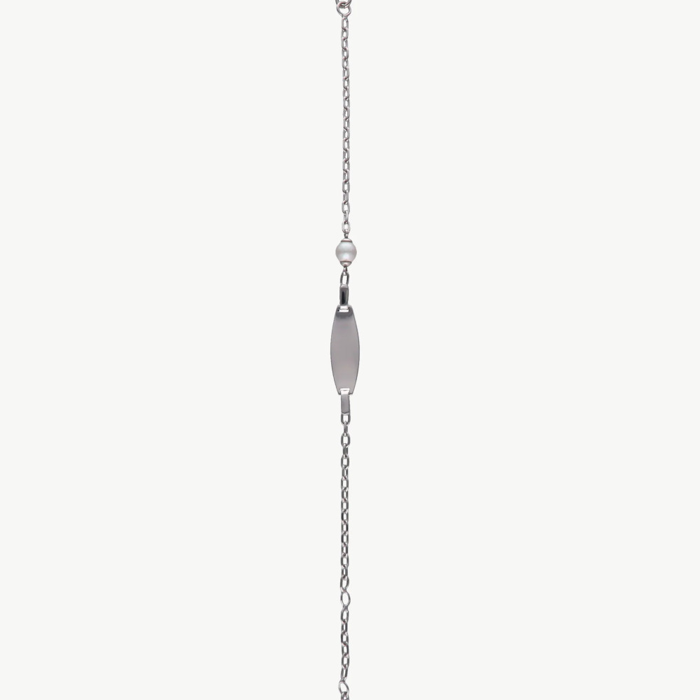 Narukvica od srebrnog lanca, s okruglom bijelom bisernom perlom promjera 5 mm. Duljina 16 cm.