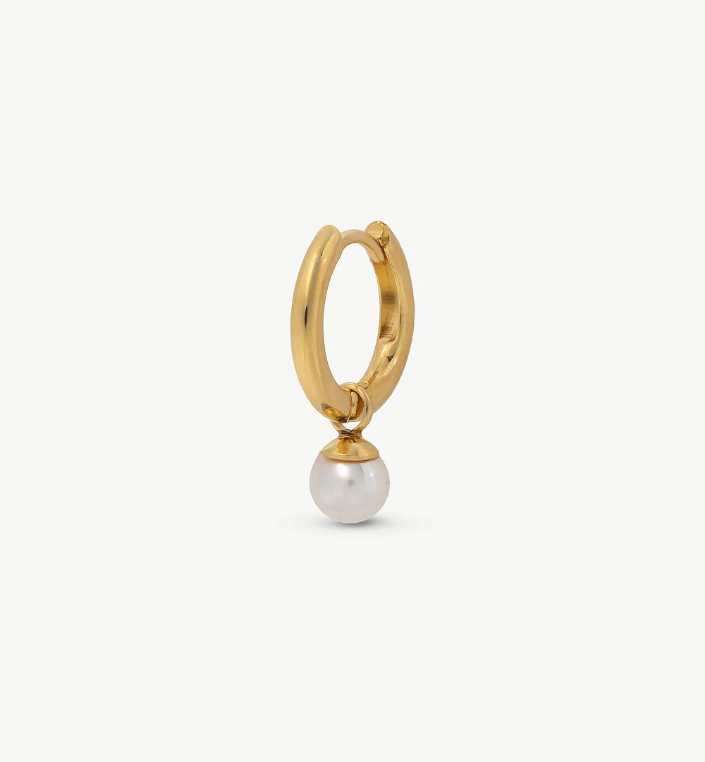 Zlatom presvučena srebrna mini hoop naušnica s bijelom okruglom bisernom perlom promjera 4 mm. (jedinica)
