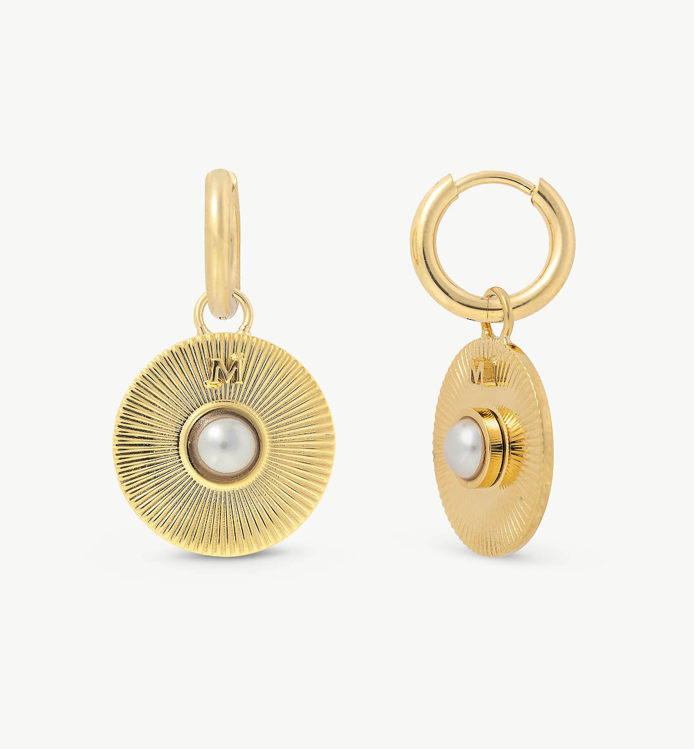 Zlatni čelični mini obruči s bijelim polukuglastim biserom promjera 4 mm.