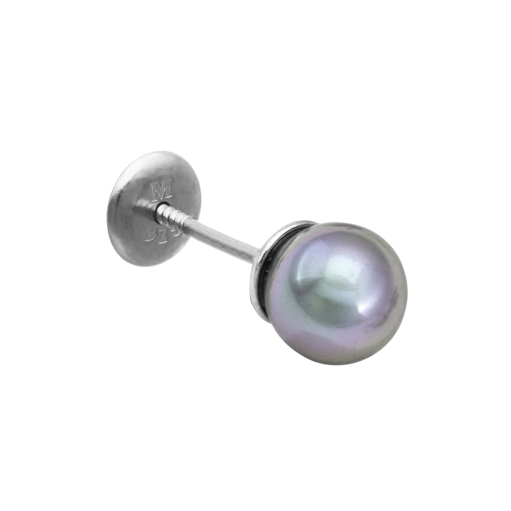 Naušnica (1 kom) od rodiniranog srebra s okruglim sivim biserom promjera 4 mm.