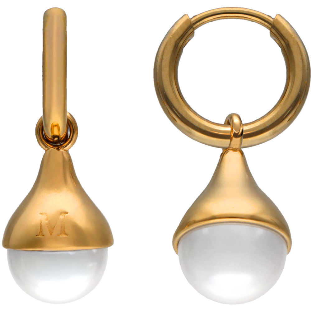 26 cm naušnice u obliku obruča pozlaćene s privjeskom u obliku kapi i jednom okruglom bijelom perlom promjera 8 mm