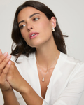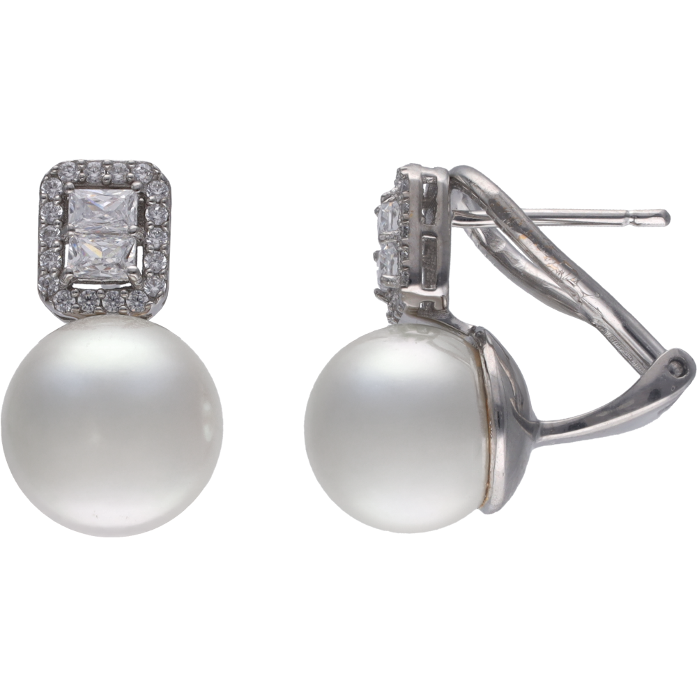 Naušnice pozlaćene rodijem s kvadratnim zirconijem i okruglom bijelom bisernom perlicom promjera 10 mm.