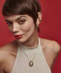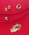Naušnice na ring od pozlaćenog čelika. Poluokrugli bijeli biser i poludragi kamen, zeleni ahat.