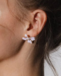 Zlatom prevučeni srebrni naušnice u obliku bijelog cvijeta s klipsom i okruglim bijelim biserima promjera 5 mm