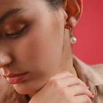 Naušnice s francuskom kopčom od pozlaćenog srebra s okruglim bijelim biserima promjera 8 mm.