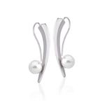 Viseće naušnice na kuku od rodiniranog srebra s okruglim bijelim biserima promjera 8 mm.