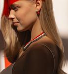 Pozlaćene srebrne naušnice s kopčom. Dvostruki okrugli biserni nuage i crveni od 8 i 10 mm