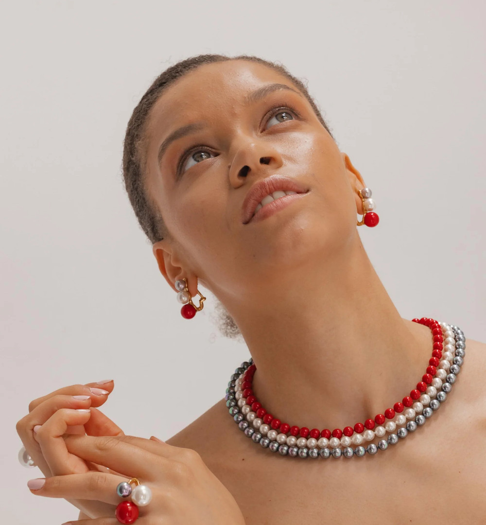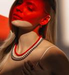 Ogrlica od zlatom presvučenog srebra s višebojnim okruglim biserima promjera 8 mm.