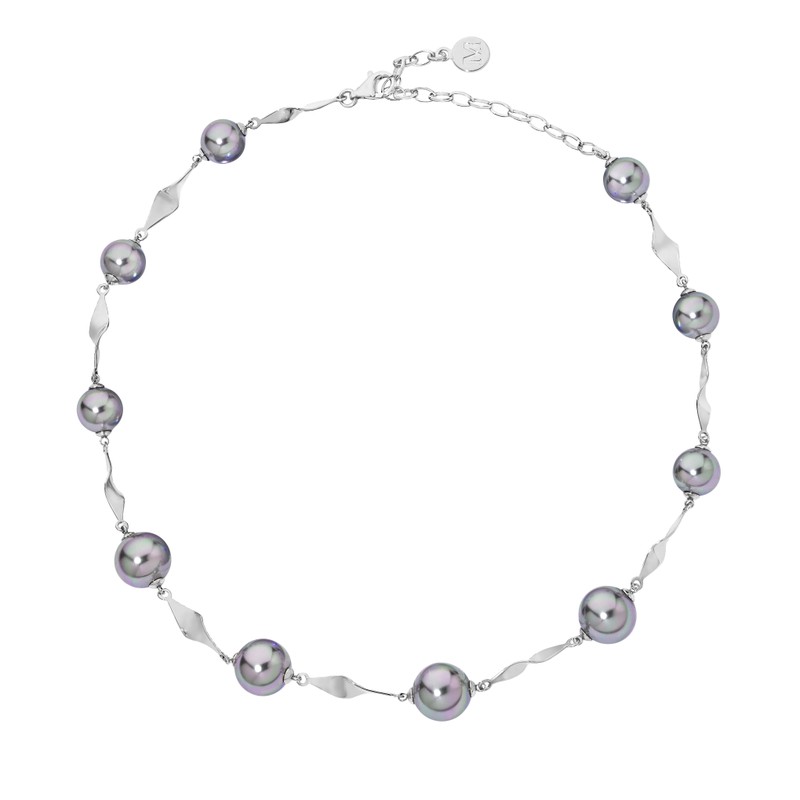 Ogrlica od rodiniranog srebra dužine 40/48cm s okruglim sivim biserima promjera 10/12 mm.