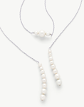 Inovativna otvorena ogrlica duljine 110 cm od sterling srebra s rodijskim premazom, bez kopče, s organskim bijelim okruglim biserima. Podesiva i prikladna za svaku priliku. Biseri različitih veličina: 5, 6, 7, 8 i 10 mm.