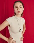 Ogrlica s lančićem od čelika dužine 70 cm s okruglim bijelim biserom promjera 16 mm.