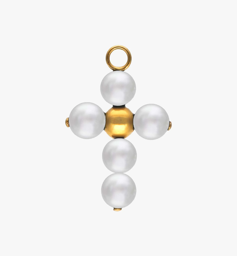 Zlatom pozlaćeni srebrni križ s bijelim okruglim biserima od 6 mm