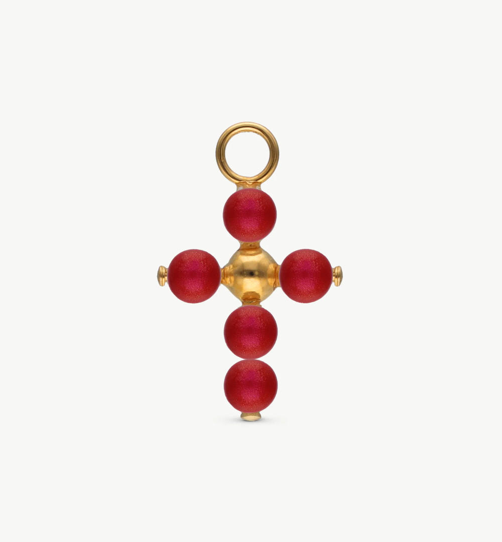 Zlatom pozlaćeni srebrni mini križ s crvenim okruglim biserima od 4 mm