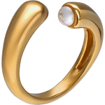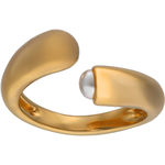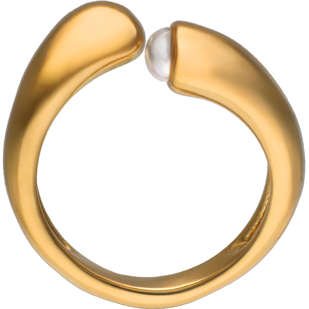 Otvoreni prsten pozlaćen zlatom s jednom pola bijelom bisernom kuglicom od 6 mm. Veličina 93