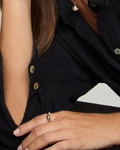 Otvoreni srebrni prsten s jednom polu-bijelom bisernom kuglicom promjera 6 mm. Veličina 93