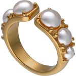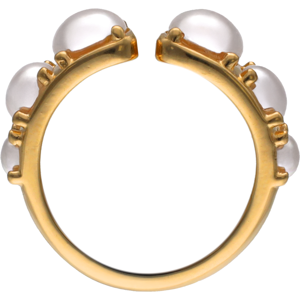 Otvoreni prsten pozlaćen zlatom s okruglim bijelim perlama promjera 4 i 5 mm. Veličina 92
