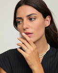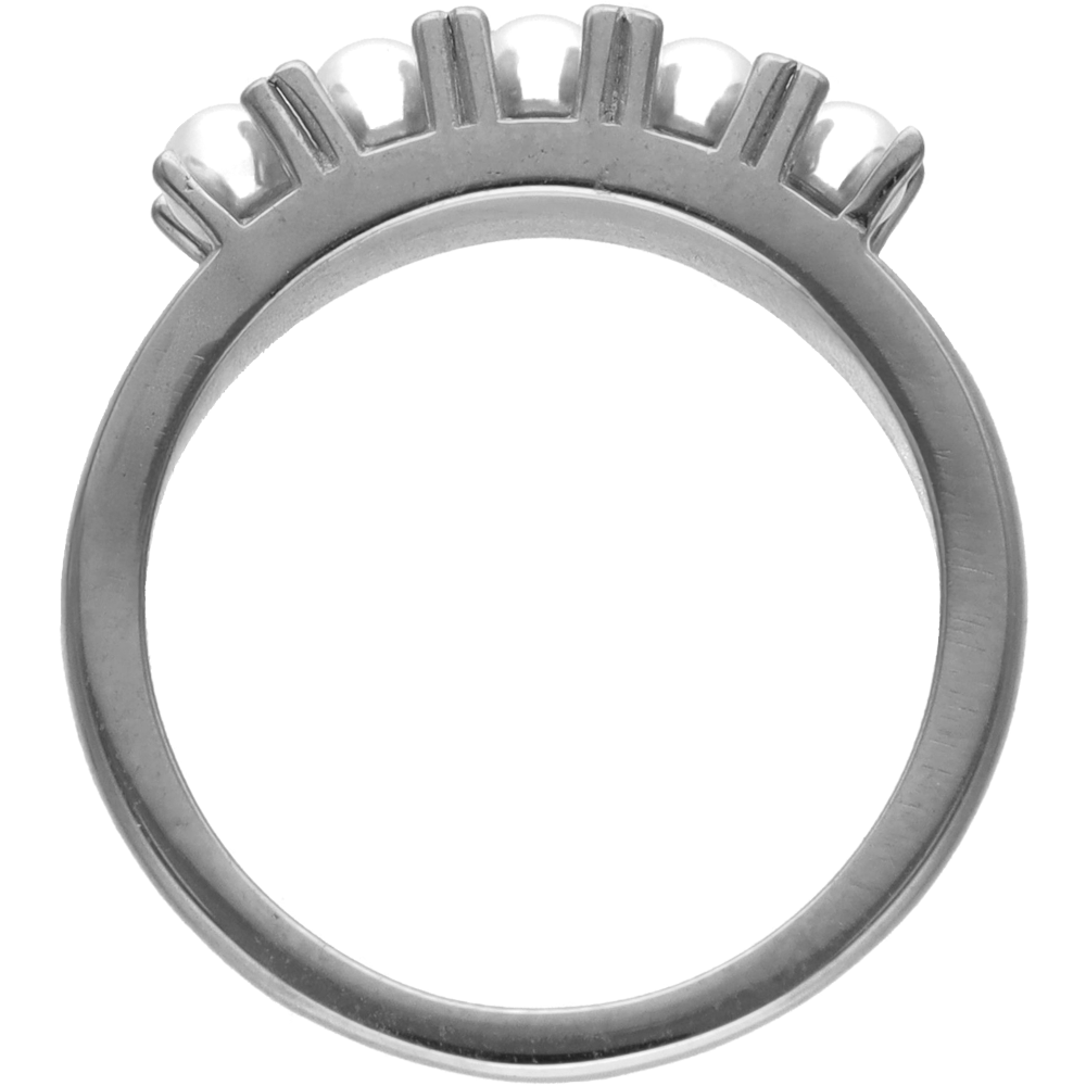 Srebrni prsten s bijelim okruglim perlama promjera 3 mm. Veličina 15