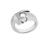 Prsten od nehrđajućeg rodiniranog čelika s okruglim bijelim biserom promjera 8 mm.
