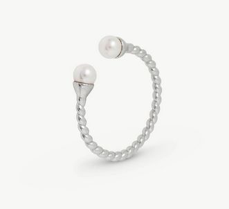 Podesivi srebrni prsten s bijelim okruglim biserima promjera 4 mm. Veličina 92