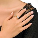 Prsten od čelika u kombinaciji s pozlatom s okruglim bijelim biserom promjera 8 mm.Veličina: 55