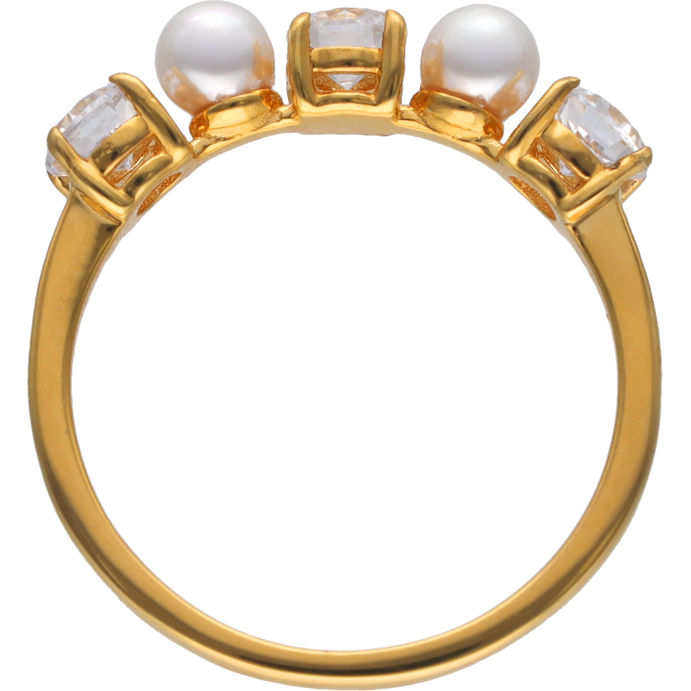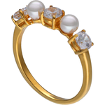 Prsten pozlaćen zlatom s 2 bijele perle promjera 4 mm i 3 cirkona. Veličina 15