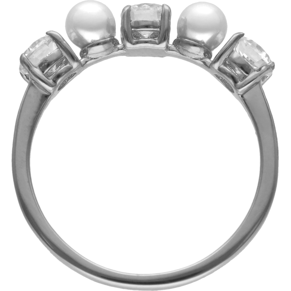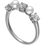 Srebrni prsten s 2 bijele perle promjera 4 mm i 3 cirkona. Veličina 15